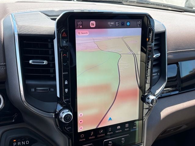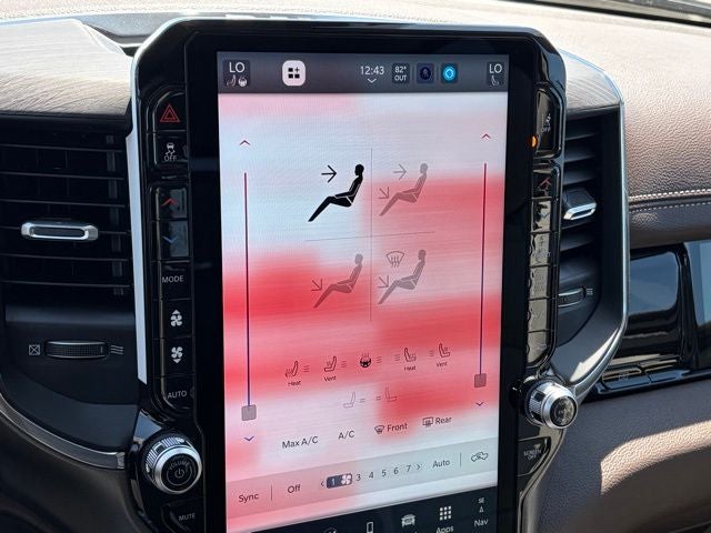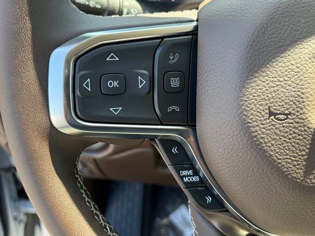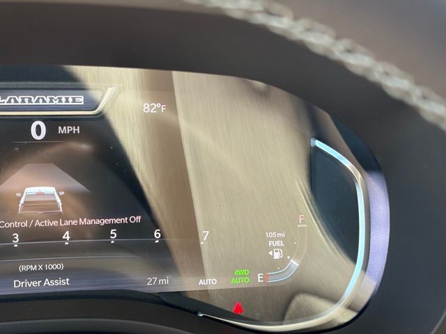 Inside, this Laramie is loaded with comfort and tech. You get leather-trimmed bucket seats, heated and ventilated front seats, heated second-row seats, heated steering wheel, 8-way power driver and front passenger seats, and memory settings for the driver seat, mirrors, radio, and pedals. The Laramie Level 2 Equipment Group upgrades the cabin with a 14.4-inch Uconnect 5 NAV touchscreen, 12-inch TFT digital cluster, front passenger interactive display, and 19-speaker Harman Kardon premium audio. Rain-sensitive windshield wipers and front and rear rubber floor mats by Mopar round it out.