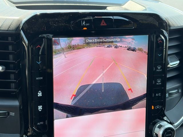 This truck is loaded with useful factory upgrades, including the Bed Utility Group with pick-up box lighting, spray-in bedliner by Mopar, exterior 115V AC outlet, and 4 adjustable cargo tie-down hooks by Mopar. It also includes the highly desirable Multi-Function Tailgate. Inside, the Big Horn Level 2 Equipment Group adds heated front seats, heated steering wheel, 8-way power adjustable driver seat, 2-way power lumbar adjustable driver seat, rear 60/40 folding seat, rear center armrest, rear power-sliding window, dual-zone automatic temperature control, power adjustable pedals, Uconnect 5 Nav with 12-inch touchscreen, 9 amplified speakers with subwoofer, power tailgate-release, 2nd-row in-floor storage bins, 400W inverter, automatic-dimming rear-view mirror, and automatic power-folding mirrors. It also has front and rear rubber floor mats by Mopar and a rear under-seat storage compartment.