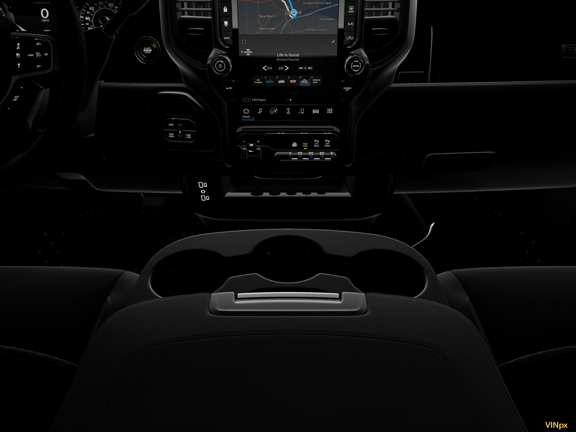 - Radio w/Seek-Scan, Clock, Speed Compensated Volume Control, Aux Audio Input Jack, Voice Activation, Radio Data System and Uconnect External Memory Control