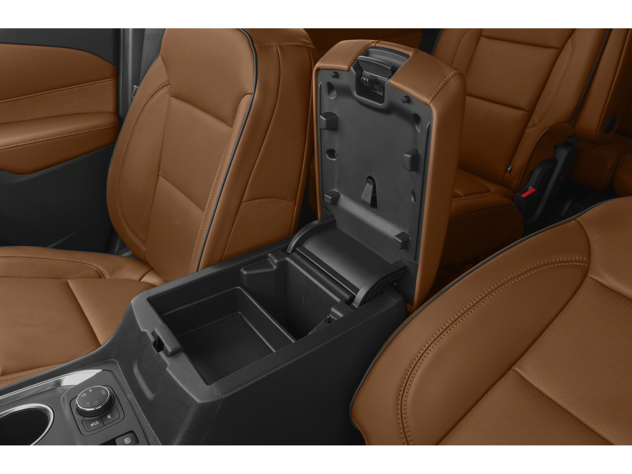 • Console, front center with 2 cup holders, covered storage bin with storage and removable tray