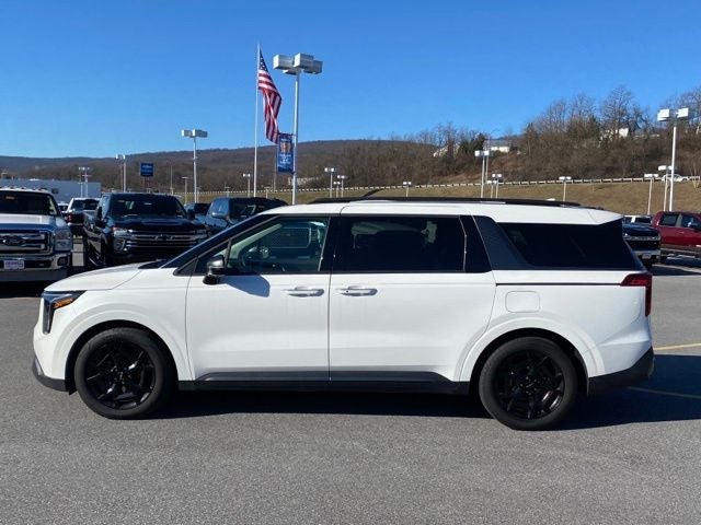 Snow White Pearl 2025 Kia Carnival SX FWD 8-Speed Automatic V6 3rd row seats: split-bench, 8 Speakers, AM/FM radio: SiriusXM, Apple CarPlay & Android Auto, Artificial Leather Seat Trim, Auto High-beam Headlights, Carpeted Floor Mats (8-Passenger), Compass, Delay-off headlights, Driver door bin, Driver vanity mirror, Exterior Parking Camera Rear, Front fog lights, Front reading lights, Fully automatic headlights, Illuminated entry, Leather Shift Knob, Leather steering wheel, Navigation system: AVN 5.0 Navigation System, Outside temperature display, Overhead console, Panic alarm, Passenger vanity mirror, Radio: AM/FM/HD Audio System, Rain sensing wipers, Rear reading lights, Rear window wiper, Security system, SX Dark Edition Package, Tachometer, Telescoping steering wheel, Tilt steering wheel, Trip computer, Variably intermittent wipers, Wheels: 7.5J x 19 Alloy Dark Edition.